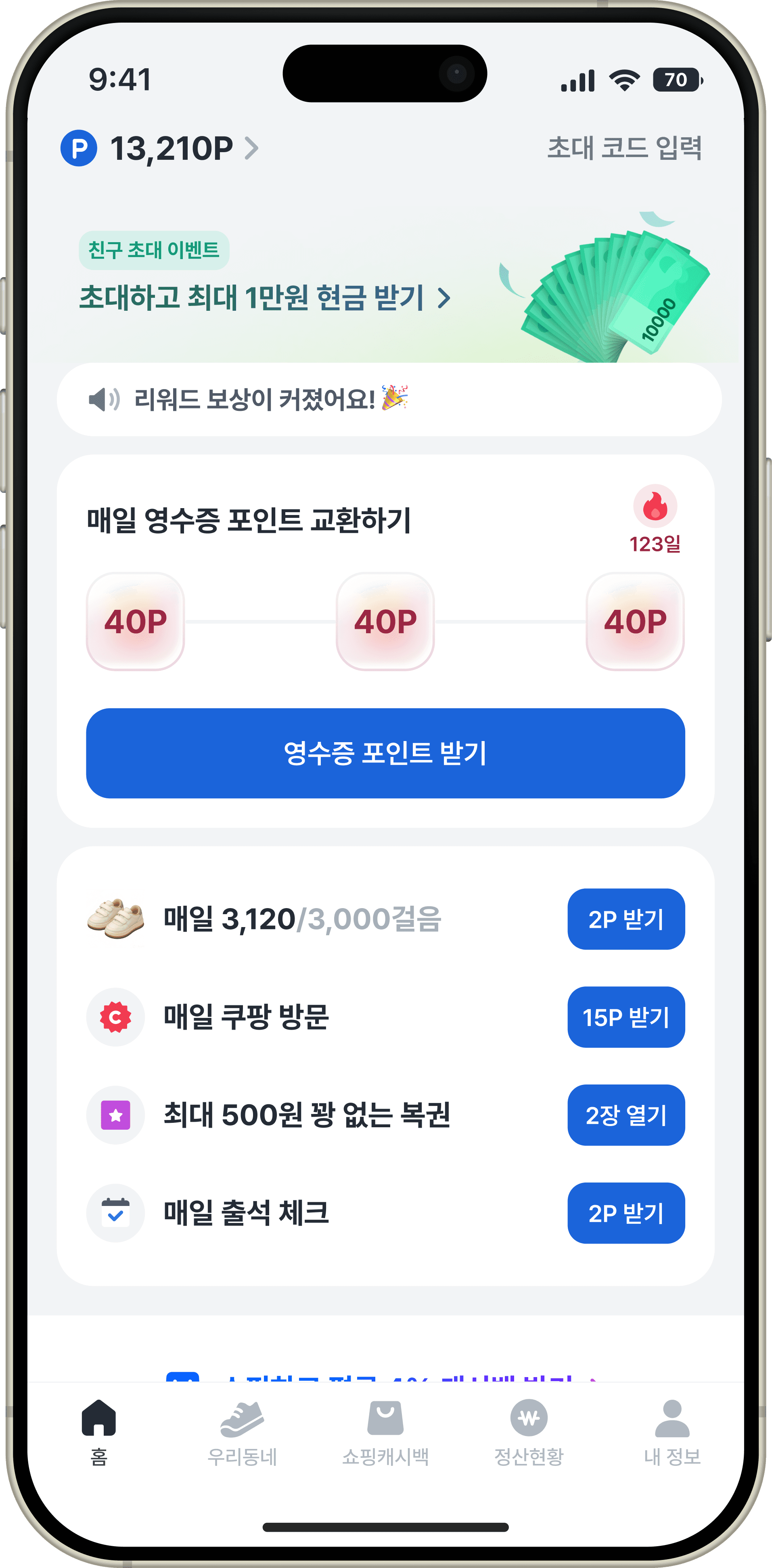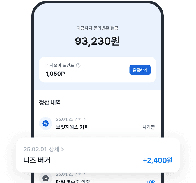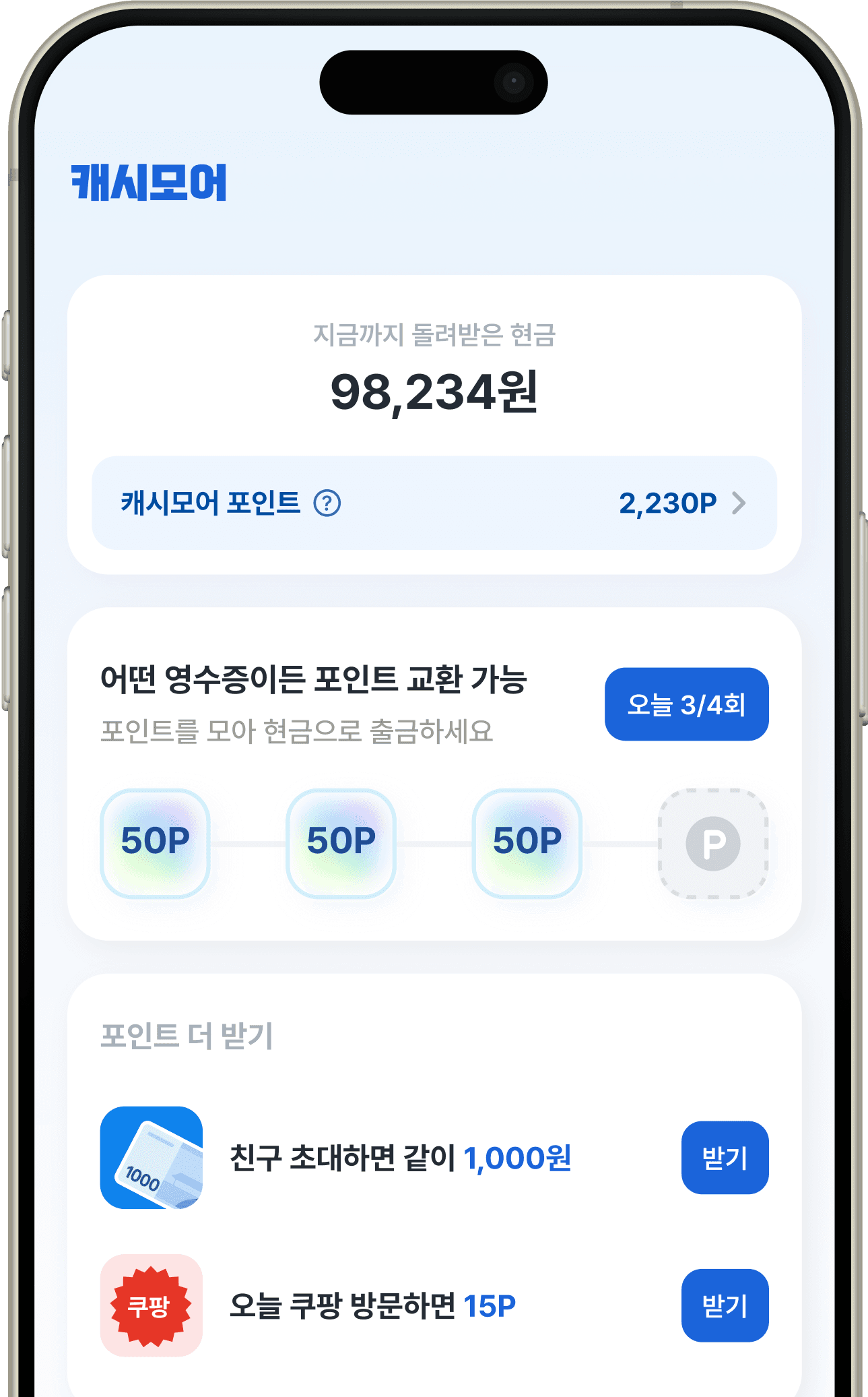 매장 방문하고, 영수증만 찍으면 현금이 들어와요