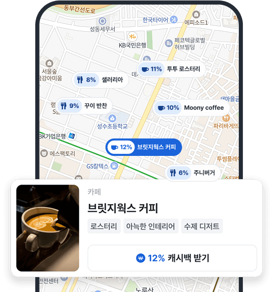 평소 알지 못했던 카페, 식당, 레스토랑, 바를 발견하고 할인 혜택받아요